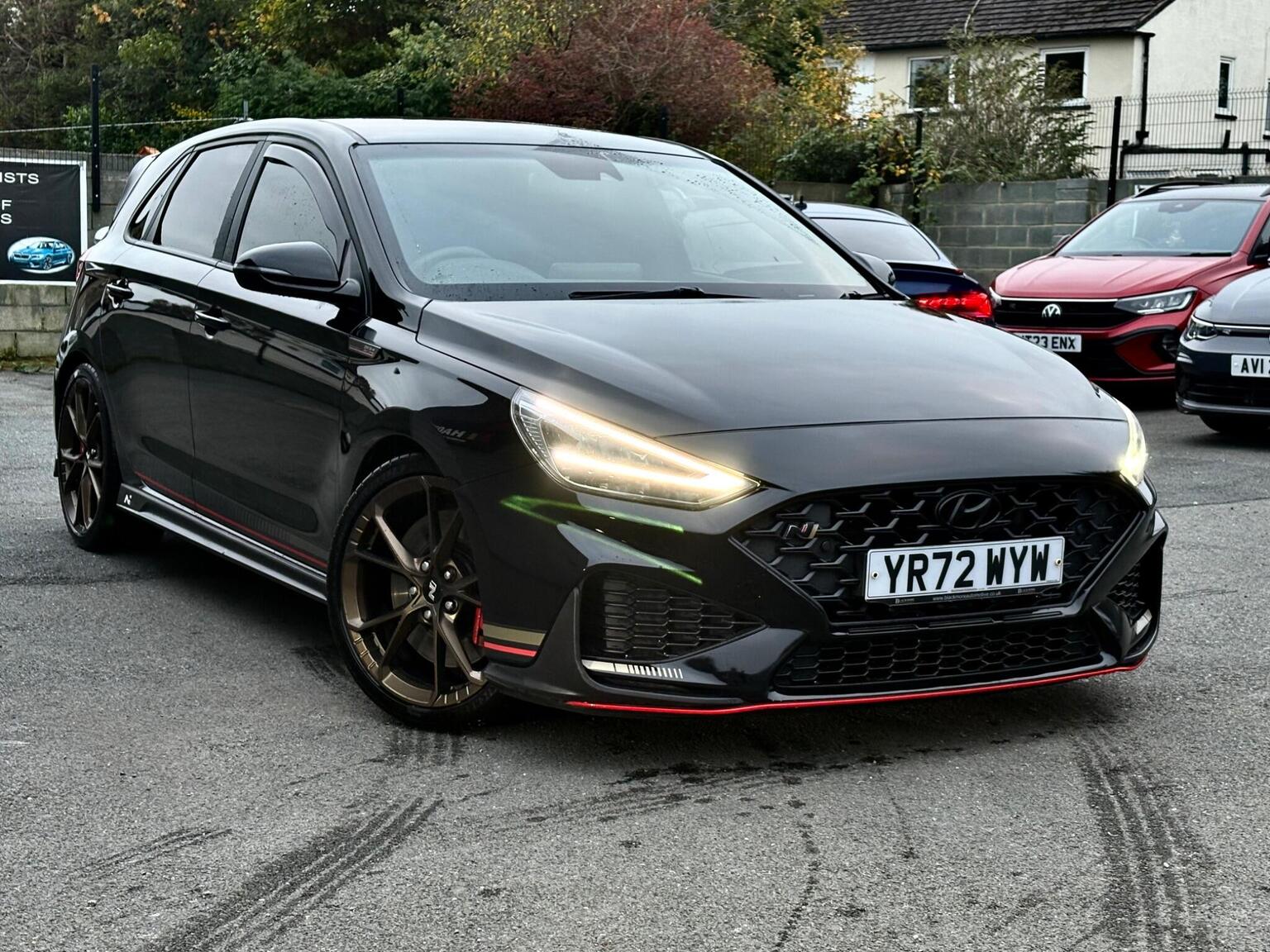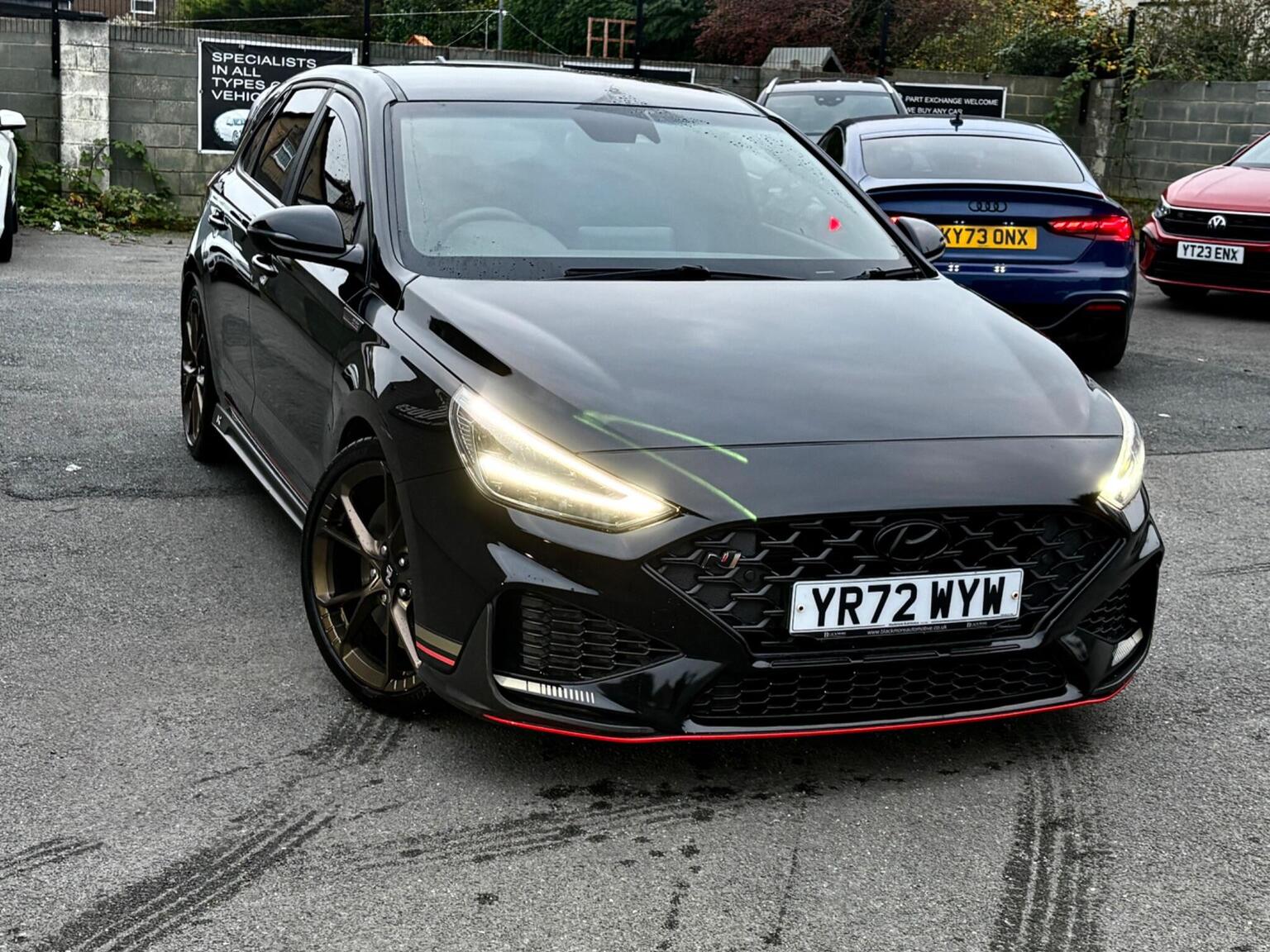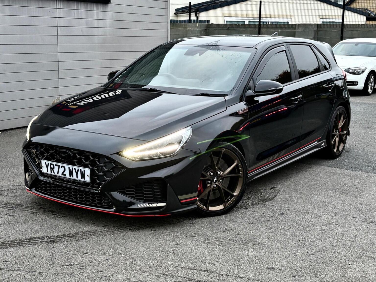 12V Power Outlet - Front Console and Luggage Compartment, 19in Alloy Wheels - Forged - Matte Bronze Dark Finish, ABS - Anti-Lock Brake System, AEB - Autonomous Emergency Brake with Forward Collision Warning System, Active Head Restraints, Active Sound Design - Electric, Active Variable Exhaust System, Airbags - Front - Front Side and Curtain Airbags, Alarm - Thatcham Category 1, Armrest - Front with Storage, Armrest - Rear with Cup Holders, Audio Control with Voice Recognition, Automatic Dimming Rear View Mirror, Automatic Headlight Follow Me Home Function, Automatic Headlights with Dusk Sensor, Automatic Windscreen Wipers with Rain Sensor, Blind Spot Collision Warning, Bluetooth Connectivity with Voice Recognition, Central Locking - Remote Control, Childproof Rear Door Locks, Climate Control with Automatic De-Fog System for Front Windscreen, Cruise Control, Cup Holders - Front, Curtain Airbag Rollover Sensor, Daytime Running Lights - LED, Deadlocks, Door Mirror Puddle Lights, Door Mirrors - Black, Door Mirrors - Electric Adjustment and Heated with Power Folding Function, Door Pockets - Front and Rear, Door Sill - N Branded Aluminium, Drive Mode Button, Drive-N Steering Wheel - Alcantara Grip with Red Stitching, Driver Attention Alert - DAA, Drivers Seat Electric Adjustments, Drivers Seat Extendable Seat Cushion Manual, Drivers Seat Height Adjustment - Electric, Drivers Seat Lumbar Support - Electric, Drivers Seat with Memory Function, Drivers Supervision Instrument Cluster with LCD Display 4.2in, ESS - Emergency Stop Signal, Electric Windows - Front and Rear with Anti-Trap Mechanism and One Touch Control, Electronic Limited Slip Differential, Electronic Stability Control - ESC, Electronically Controlled Suspension, Exterior Door Handles - Body Coloured, Front Passenger Airbag De-Activation Switch, Front Passengers Seat Electric Adjustments, Front Passengers Seat Extendable Seat Cushion Manual, Front Passengers Seat Height Adjustment - Electric, Front Passengers Seat Lumbar Support - Electric, Glove Compartment, HAC - Hill-Start Assist Control, Headlights - LED, Headlining - Black, Heated Front Seats, Heated Steering Wheel, Hyundai Nurburgring Test Centre Badge, ISOFIX Child Seat Anchorage Points - Rear, Immobiliser, Indicator Lights - Door Mirror - LED, Intelligent Speed Limit Warning - ISLW, Interior Door Handles - Black, Interior Front Map Reading Light and Sunglasses Holder, Interior Light - Front - Rear and Luggage Compartment, Lane Departure Warning System with Lane Keeping Assist, Lane Follow Assist - LFA, Launch Control, Locking Wheel Nuts, N Exclusive - Rear Diffuser, N Exclusive Front and Rear Bumpers, N Exclusive Radiator Grille, N Exclusive Sport Cluster, N Grin Shift Button, N Mode Button, N Power Shift, N Track Sense, N-Drive Limited Edition Decals, Parking Brake - Manual, Parking Sensors - Front and Rear, Parking System - Rear Camera and Guidance System, Pedals - Aluminium, Performance Information Display, Performance Tyres - 19in Pirelli P Zero, Phone Connection - Android Auto, Phone Connection - Apple CarPlay, Privacy Glass - Rear Windows and Tailgate, Rack Motor Driven Power Steering, Radio - Digital DAB, Rear Break Lamp in Signature N Triangular Design, Rear Lights - LED, Rear Spoiler, Rear Stiffness Bar, Rear Windscreen Wiper - 1 Speed Non Intermittent, Red Brake Caliper with N Logo, Reinforced Brakes, Rev-Matching System, Seat Belts - Red - Front and Rear, Seatbelt Reminder - Front and Rear, Seatbelts - Height Adjustable Front, Shark Fin Antenna, Shift Timing Indicator, Smart High Beam, Smart Key - Keyless Entry with Engine Start-Stop Button, Smoked Tail Light, Speakers - 2 Tweeters - 2 Front - 2 Rear, Speed Sensitive Automatic Door Locking, Split Folding Rear Seats - 60-40, Static Cornering Lights, Steering Column - Height and Reach Adjustable, Steering Wheel with Audio - Phone and Cruise Controls, Sun Visors with Driver and Passenger Illuminated Vanity Mirrors, Torque Vectoring, Touchscreen Satellite Navigation 10.25in with Bluelink and Live Services, Trim - Artificial Leather Door Centre, Trip Computer, Twin Exhaust Pipe, Tyre Mobility Kit, Tyre Pressure Monitoring System - TPMS, USB Connection - Centre Console, Window Surround - Black, Windscreen Washer Fluid Sensor and Warning Indicator, Wireless Phone Charging Pad, eCall - Emergency Call Button