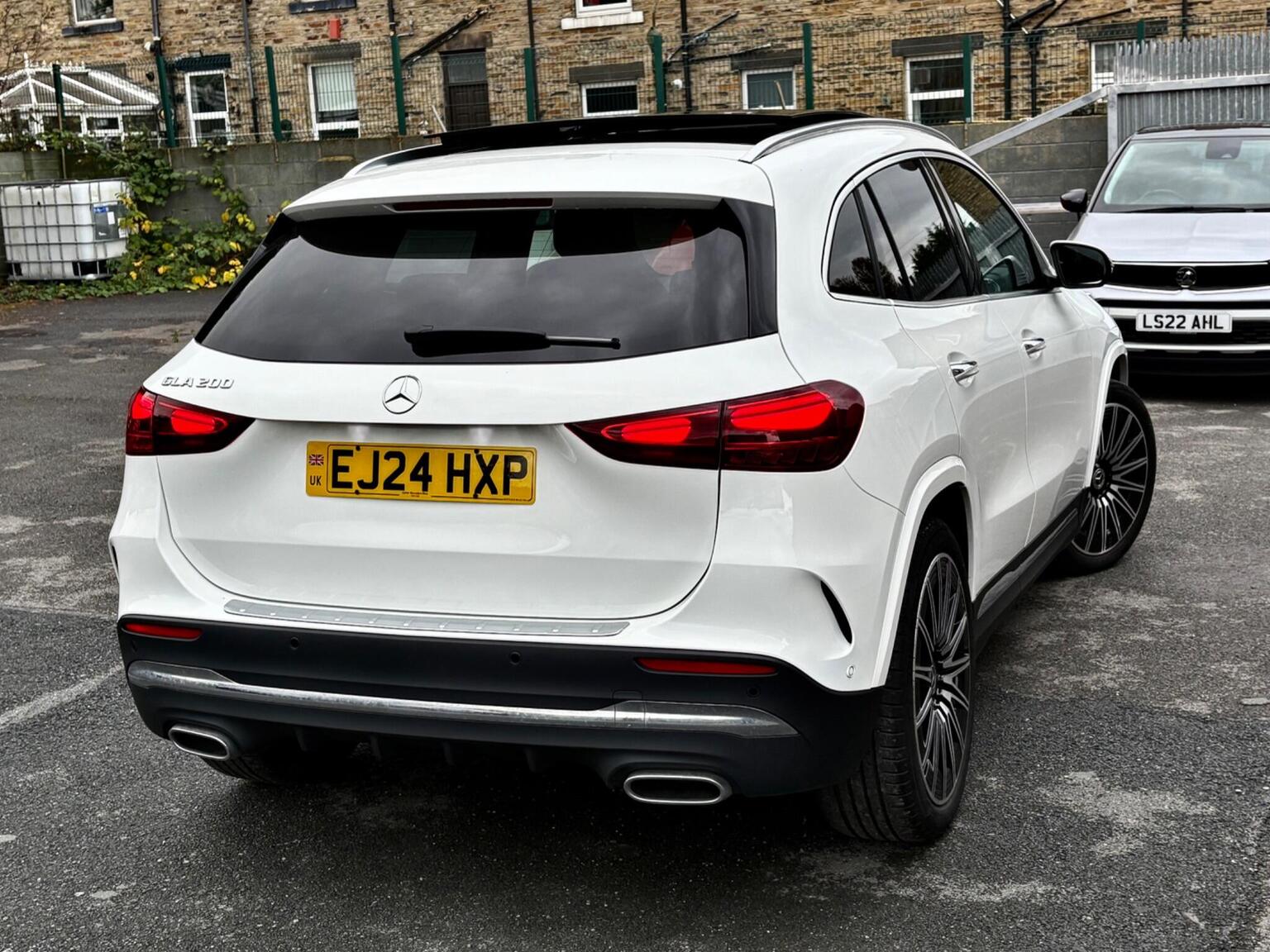 This 2024 Mercedes Benz GLA200h AMG Line (Premium Plus) is a superb example, having had only one owner from new. This stylish SUV boasts a 1.3 litre petrol hybrid engine, meeting Euro 6 emission standards. The AMG Line trim enhances its sporty appeal, while the Premium Plus package brings a host of desirable features. Navigate with ease thanks to the Parking Package, complete with a 360 degree camera and parking assistance. Enjoy an open and airy cabin with the panoramic glass sunroof, which also offers an opening function. The advanced MULTIBEAM LED headlights provide excellent visibility, automatically adjusting for optimal illumination and featuring adaptive highbeam assist.